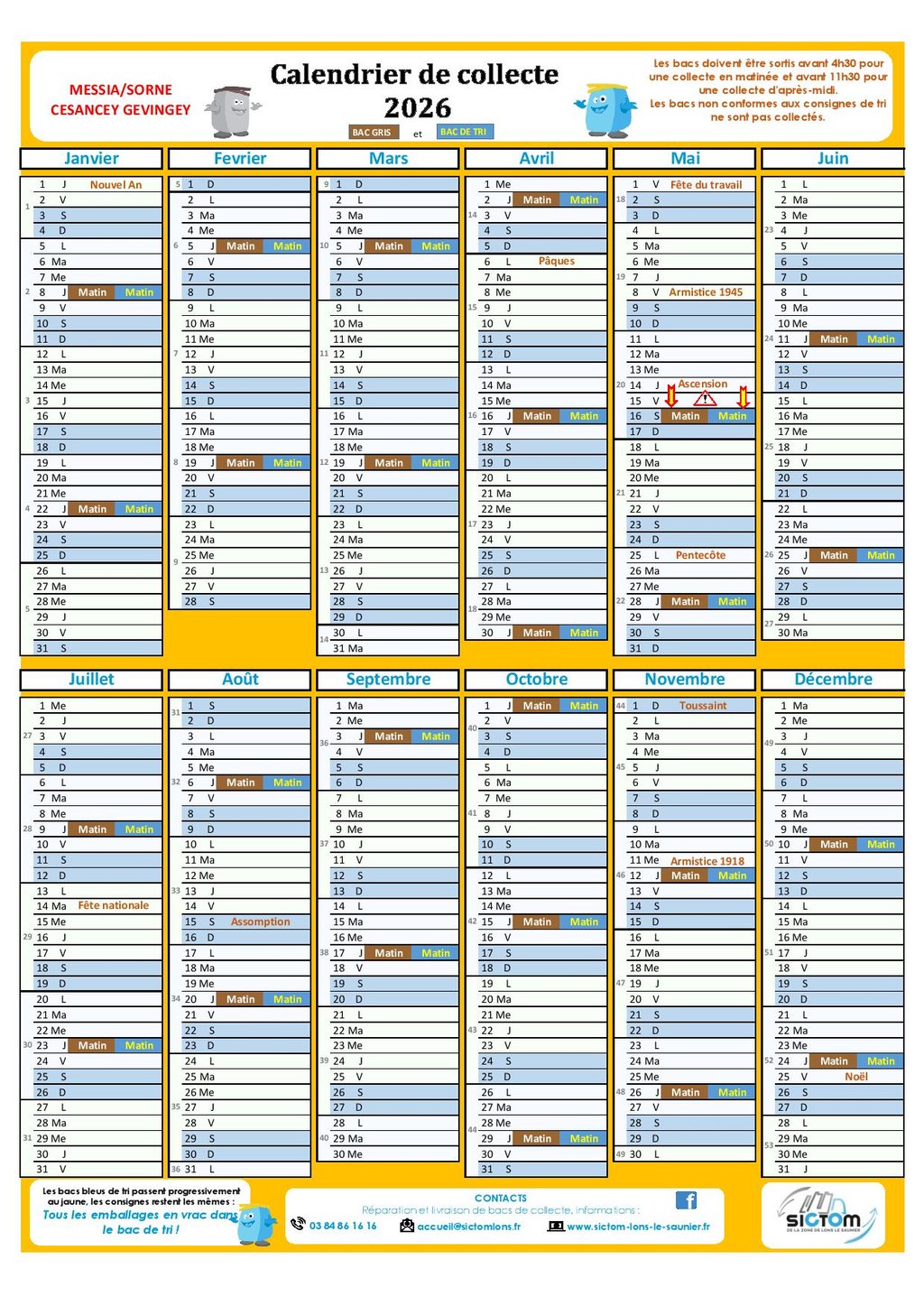 Veuillez trouver en pièce jointe le calendrier collecte SICTOM des déchets 2026,